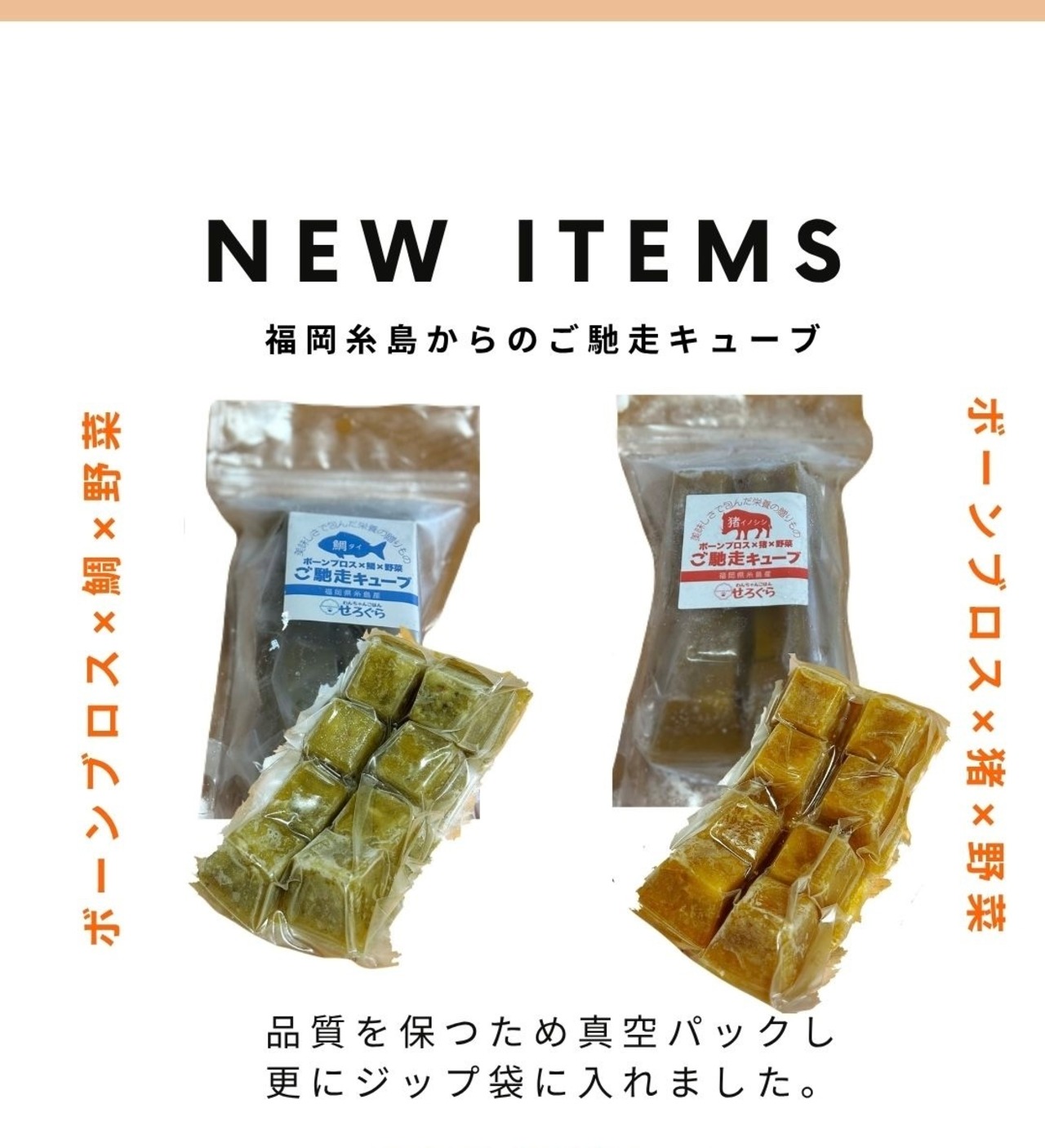 「ご馳走キューブ 鯛 冷凍」は、福岡県糸島の新鮮な鯛を使用した愛犬のためのスープキューブです。便利な20gサイズのキューブが8個入っており、日々の食事に簡単に栄養をプラスし、美味しさを引き立てます。愛犬の食事がより豊かで楽しいものになるよう、こだわりの素材を使用しました。